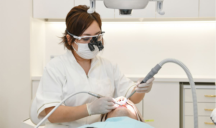 当院は、緻密な診療によって再発・再治療のリスクをなくすことを目指します。そのため、解像度の高いデジタルレントゲンを導入し、小さなむし歯も見逃さないようしっかりと診断いたします。処置をする時は拡大鏡を装着する方針です。
